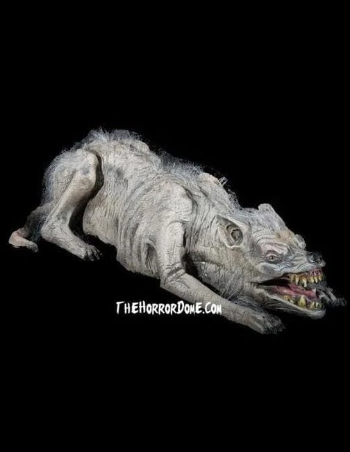 Set a grisly scene in your professional haunted house attraction with this deranged doggo. Pair slim with a dismembered body and add a little fake blood. It will look like this horrifying hound is in the middle of a feast.