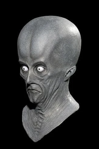 This otherworldly brute features an oversized, bulbous skull, focused, beady eyes, a pointy nose, and dark grey colored skin. Wear with a lab coat for the perfect ET mad scientist look. This amazing character can also double as a demon or vampire. Turn heads at the costume party, freak out your neighbors or stage a Roswell crash 2.0 with this versatile mask.