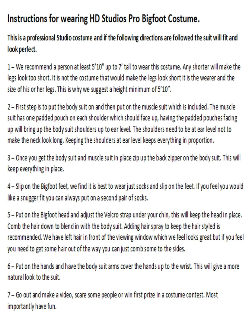 Our Movie Quality Sasquatch / Bigfoot Costume Features: