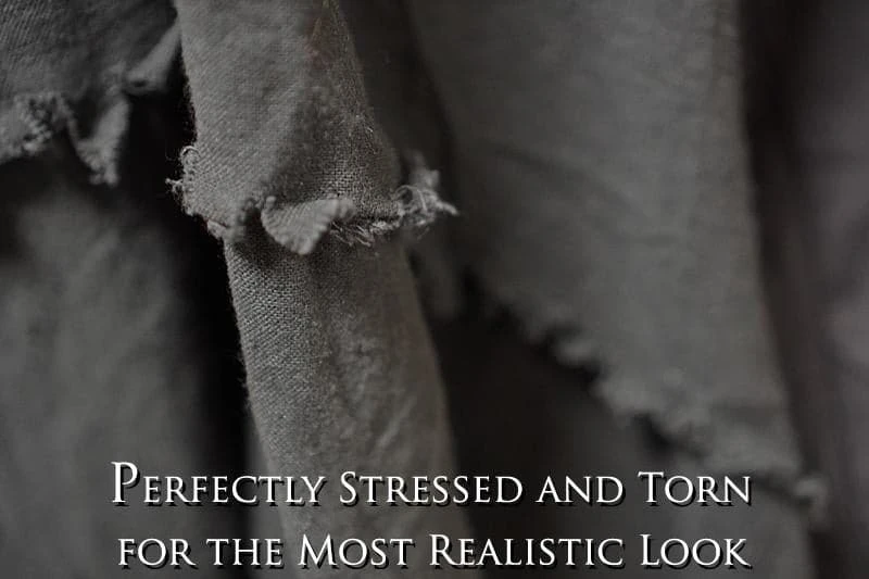 This Professional robe is Movie-Quality with hand-stitched designs, sewn-in shoulder padding to give the appearance of a wider build and sewn in wire to keep the hood up in a standup position. The stonewashed material has been meticulously stressed, stained and discolored to give the appearance of age.