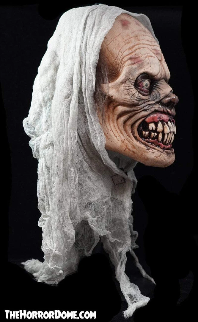 The Wraith is a movie-quality Halloween mask, manufactured exclusively by The Horror Dome. Expertly crafted by inspired artists and designers, these incredible over the head masks are amazing for both wear and display. Gather your friends and go together as a grotesque gang of walkers, or freak out neighborhood kids as they approach your house in search of candy. Get big-budget looks on an indie budget with these fantastic masks.
